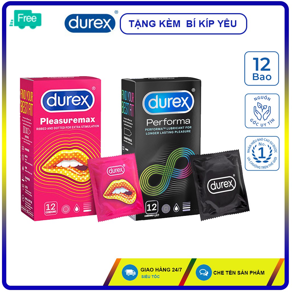(Combo Kéo dài thời gian & Gân Gai ) Bao cao su Durex Pleasuremax, Durex Performa. Mẫu mới nhất. free ship